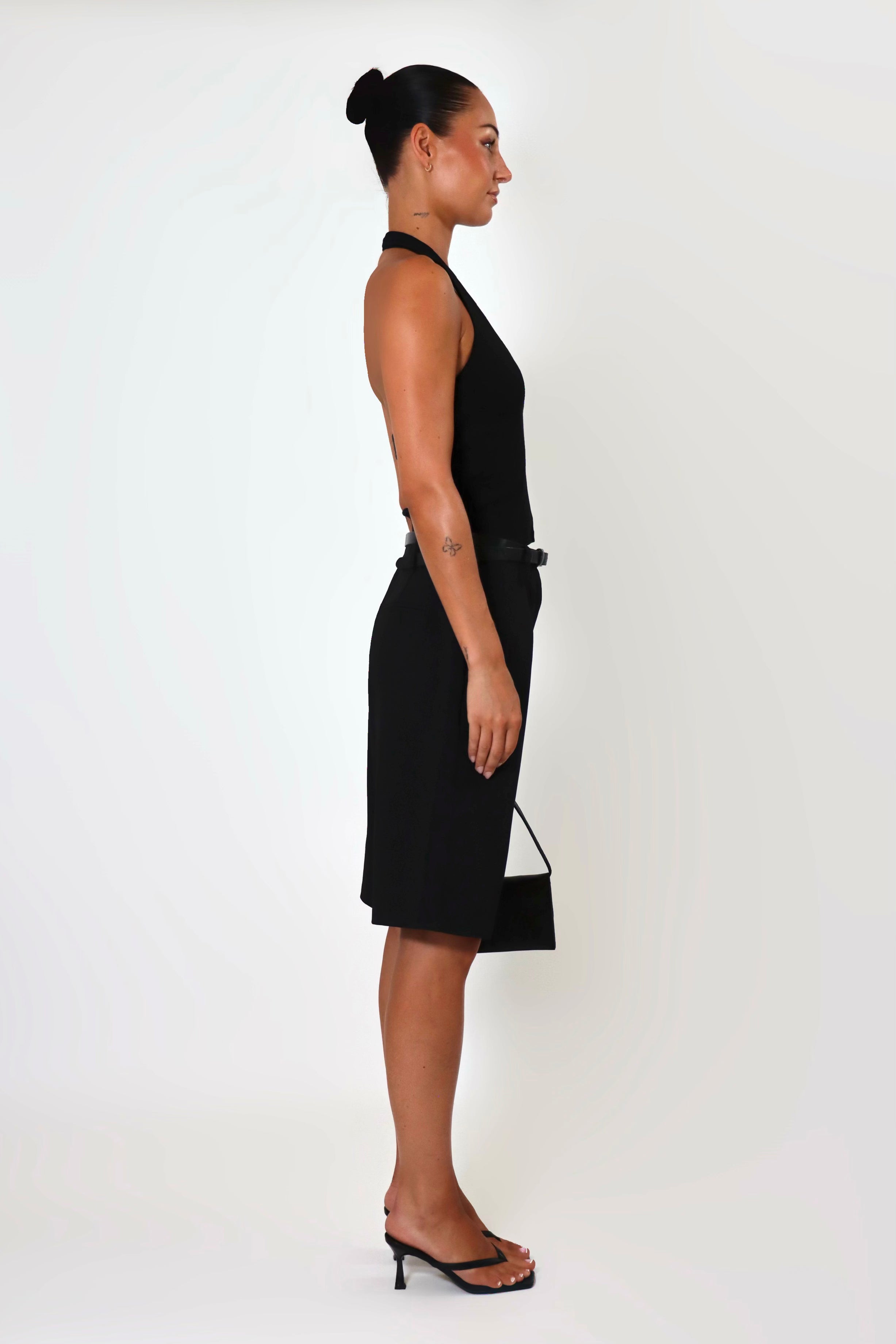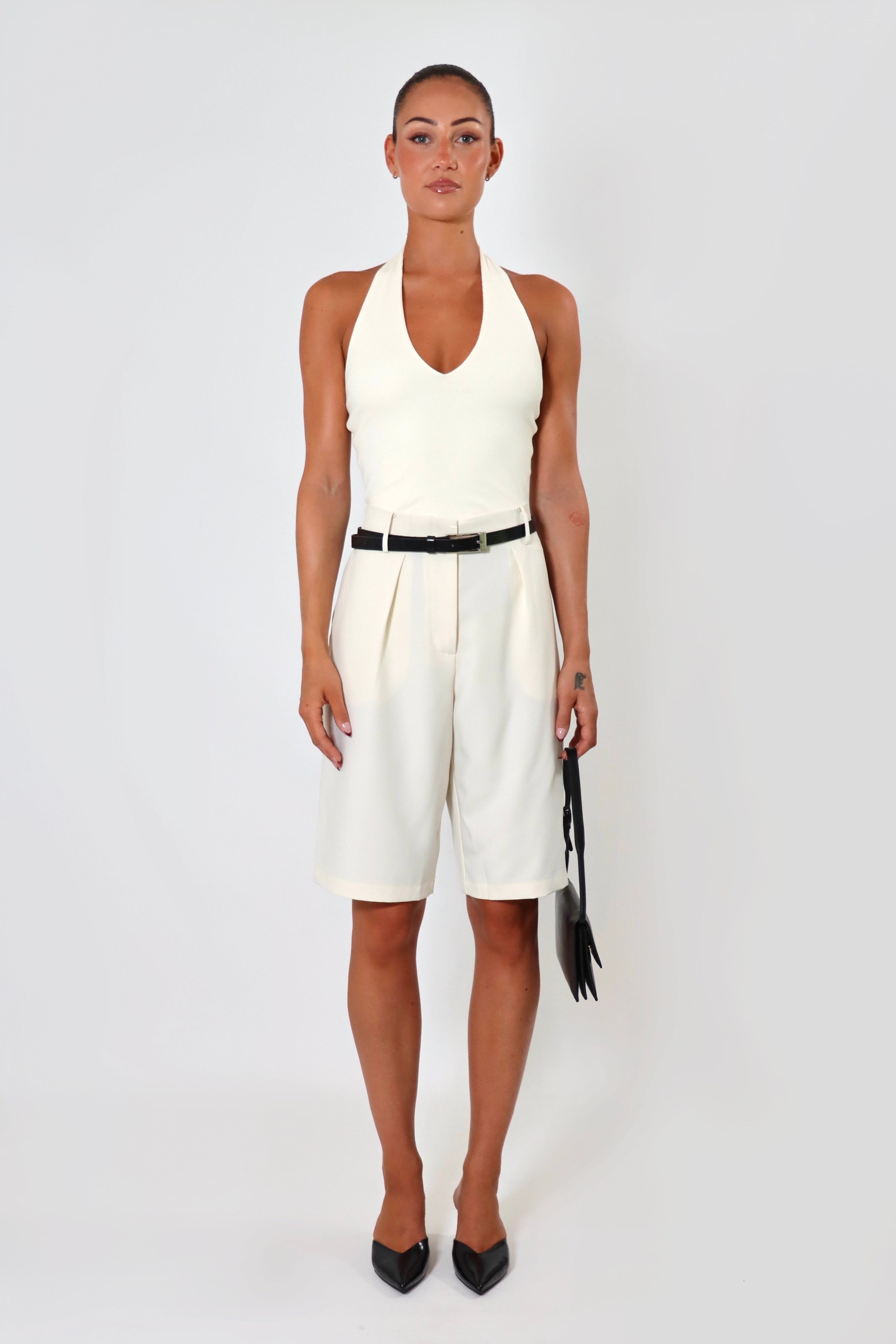 Meet the Rhea Top from April Seven — a minimalist staple with a modern edge. Crafted in a soft cotton rib knit, this design features a plunging V-neckline, open back, and a lined front for a smooth fit. Pair it with the April Satin Pant for an effortless look.